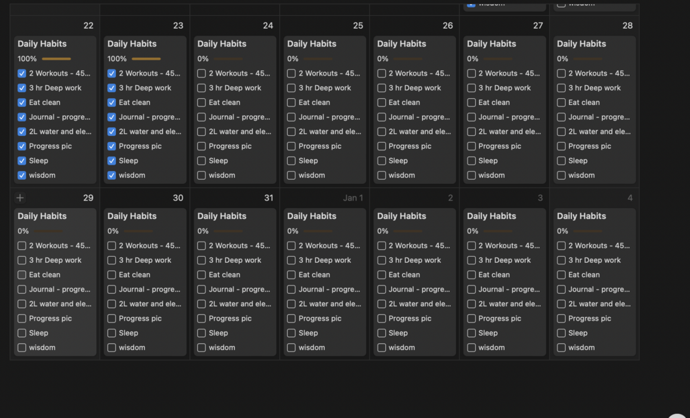 This Notion Template as an organisational and progress tool. As well as information on every subject in the routine that will elevate your life.